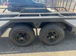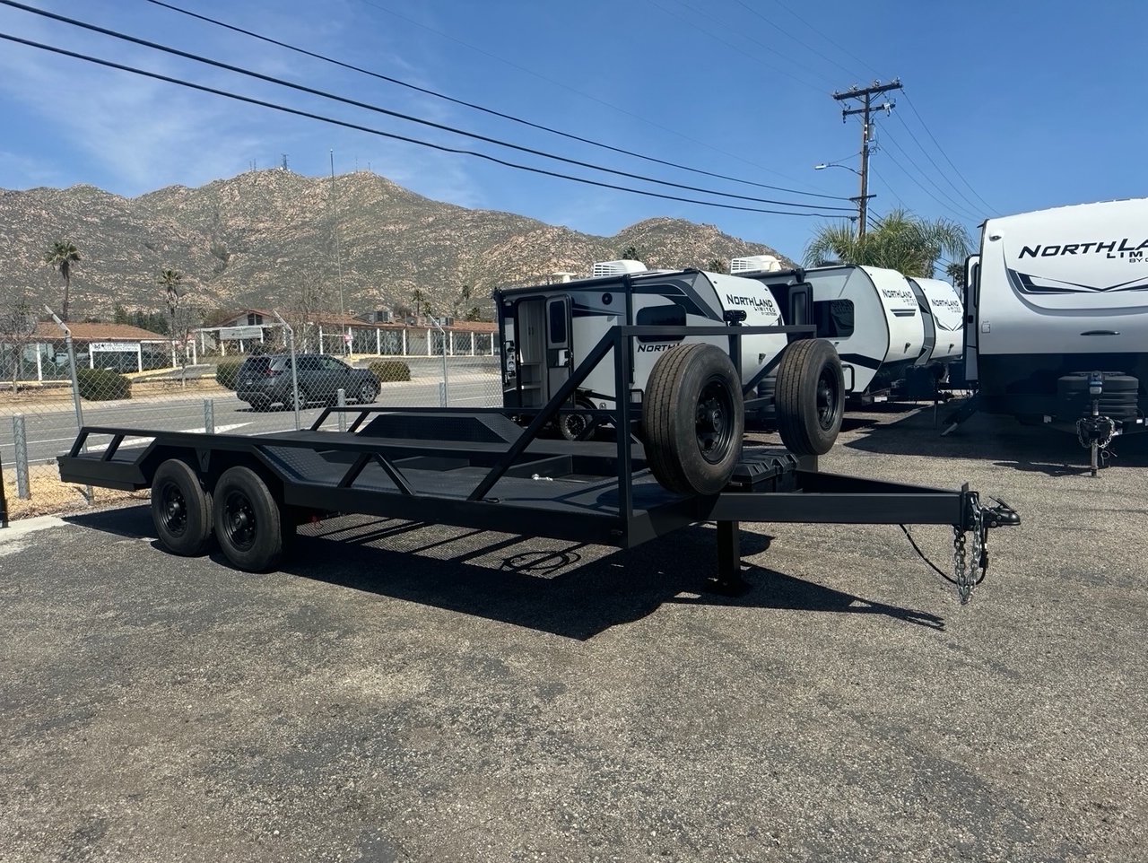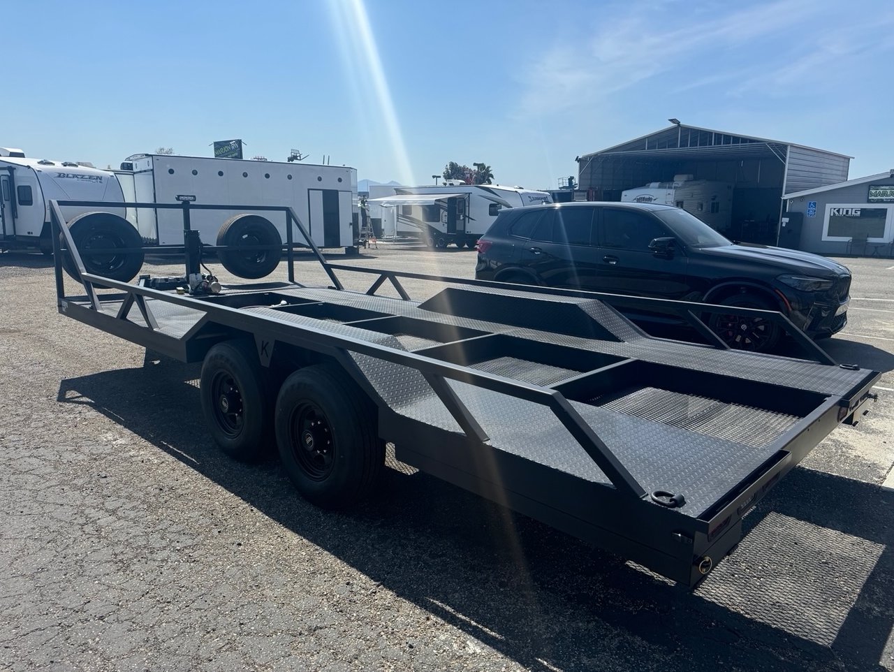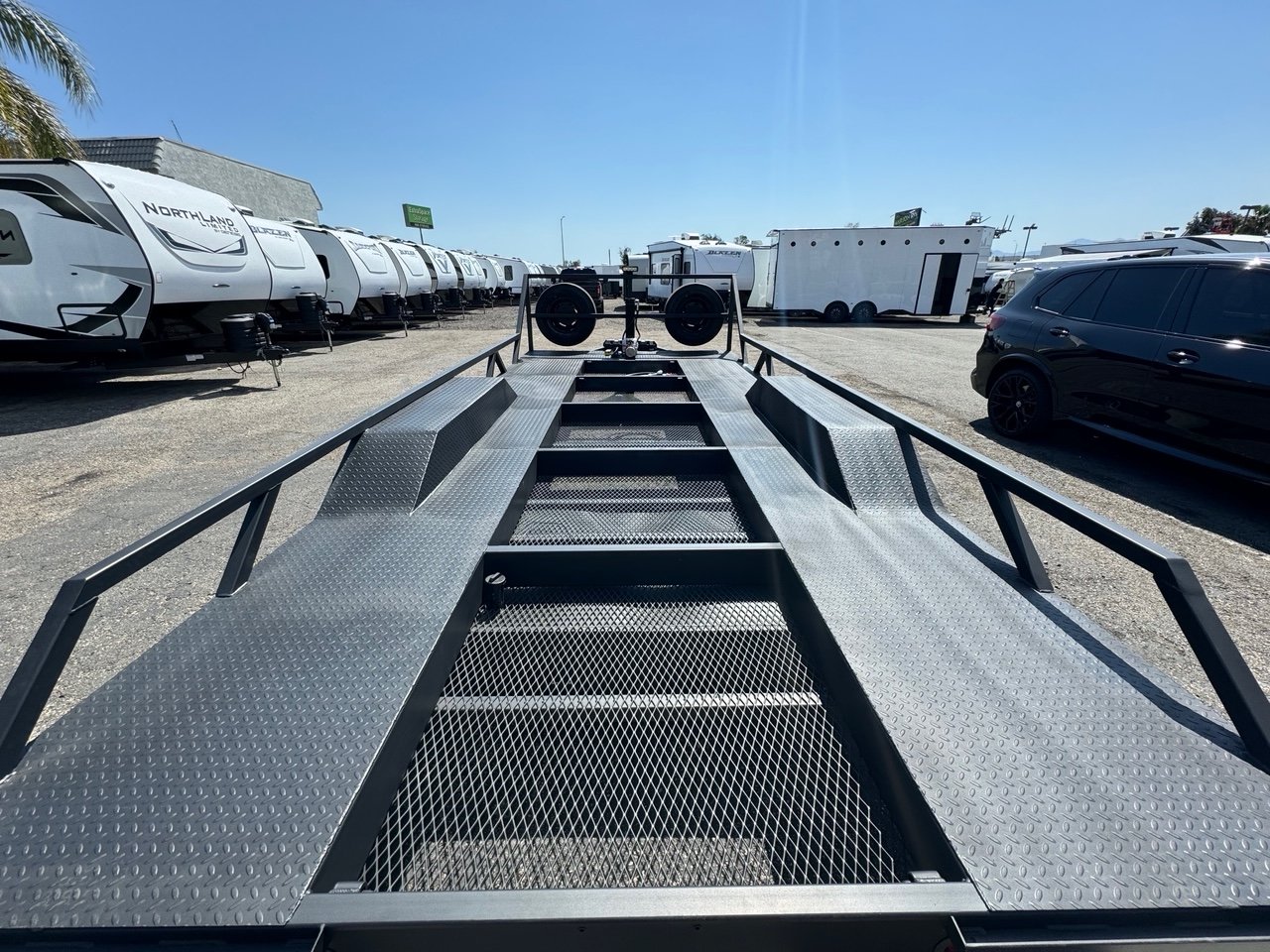 2025 King Racer X 25' Overall Length Integrated Hydraulic Tongue Jack with Adjustable Hitch 100 Gallons of fuel with detachable 10' Hose 12GMP room for 6 40'' Tires across the front with room for 4 more down the center steel deck 7000 LBS Axles with brakes on both Aluminum wheels with two matching spares and much more.